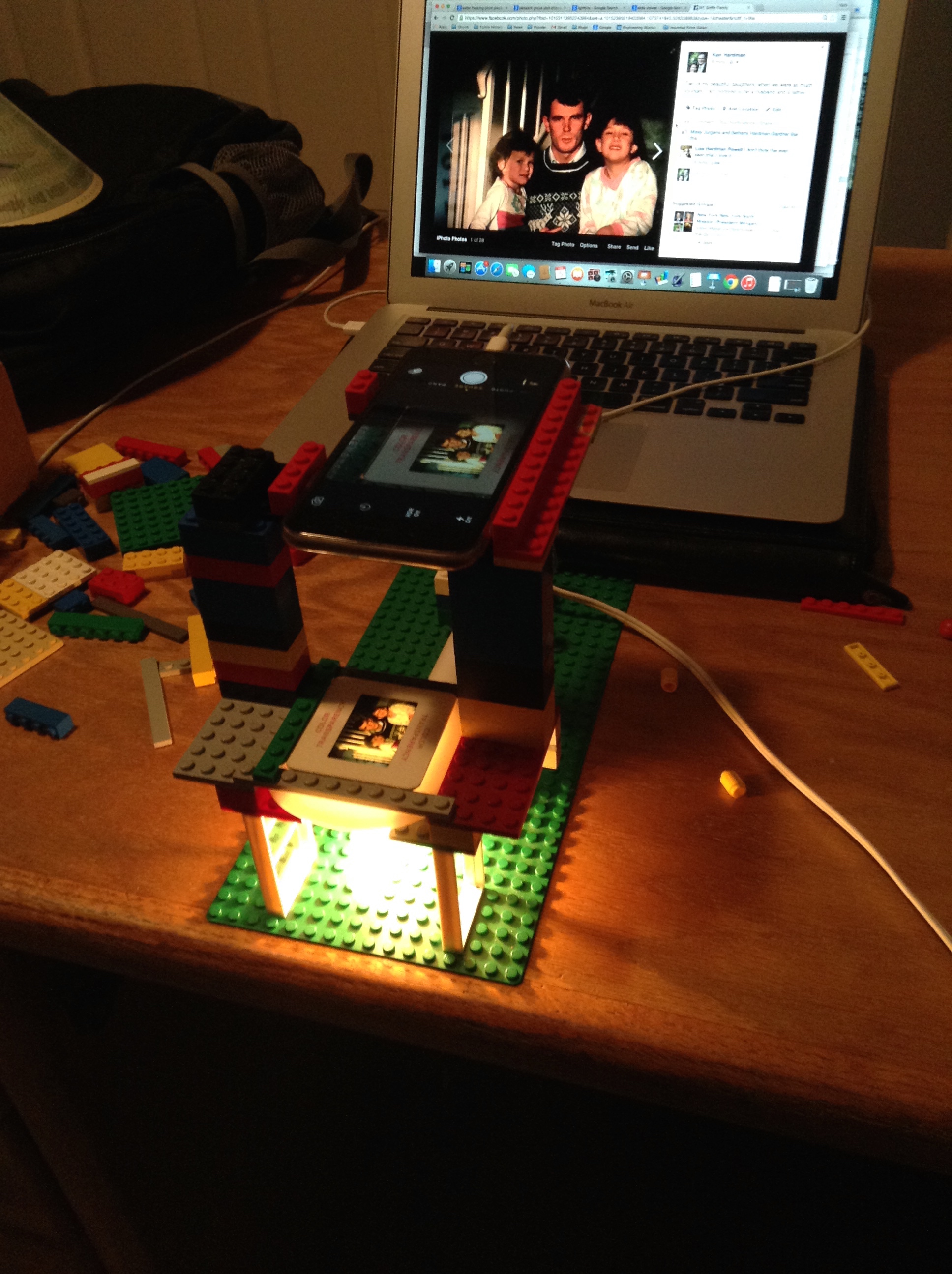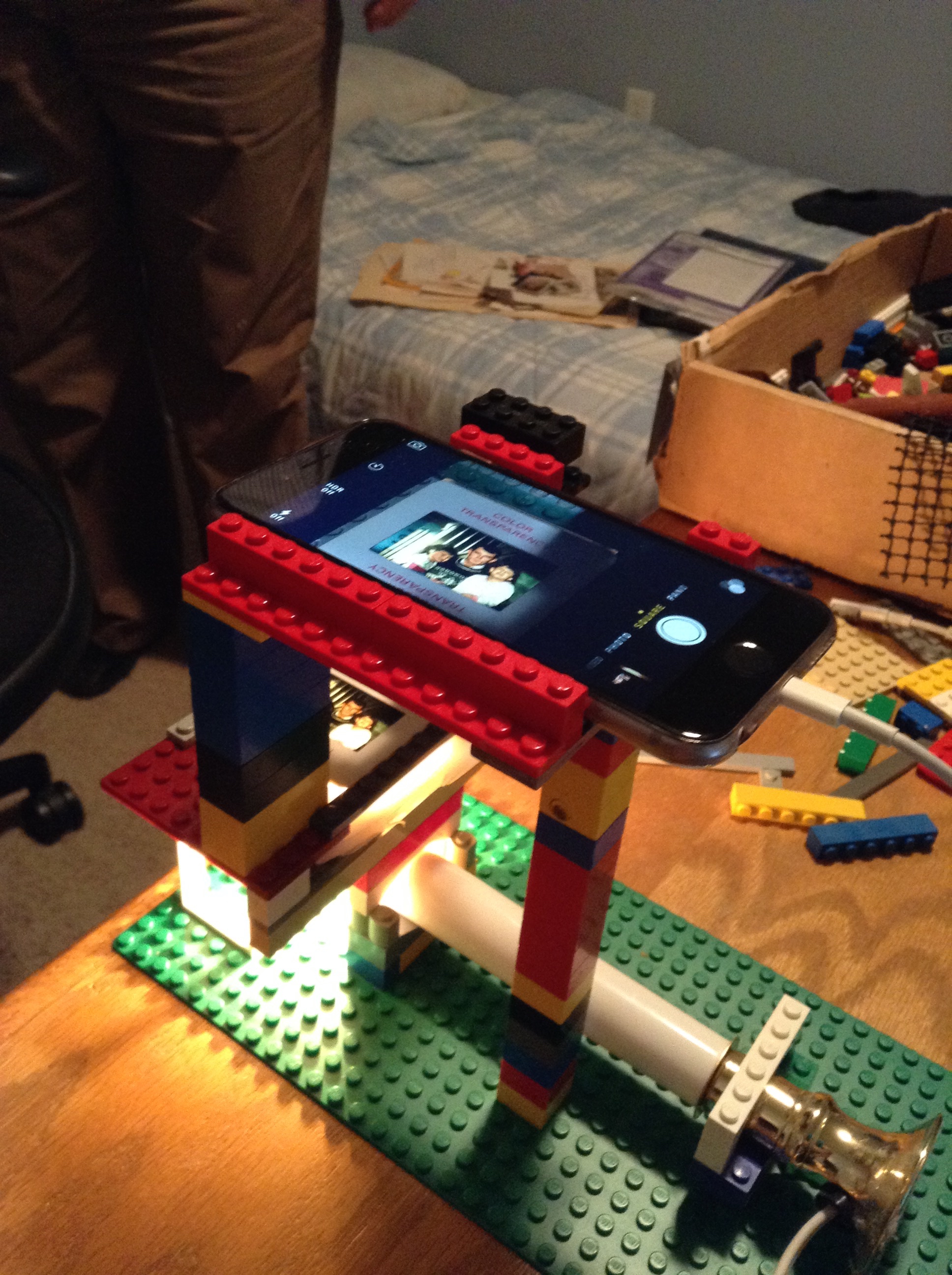 Now I know that I can purchase a digitizer for 35mm slides; but, “where’s the fun in that?” I have a smart-phone with a digital camera and amazing pixel resolution, and I understand the basics of light and optics to give it a shot. So one evening, I grabbed my grand-kids favorite box of Lego’s® and went to work, for fun of course.